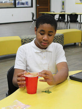 Facilitated by their knowledge on DNA, chemical reactions, and precipitation reactions the students were able to extract the strawberry's DNA. The students produced a chemical reaction which allowed them to release the DNA from the strawberry cells and a precipitation reaction which allowed them to see the cells.